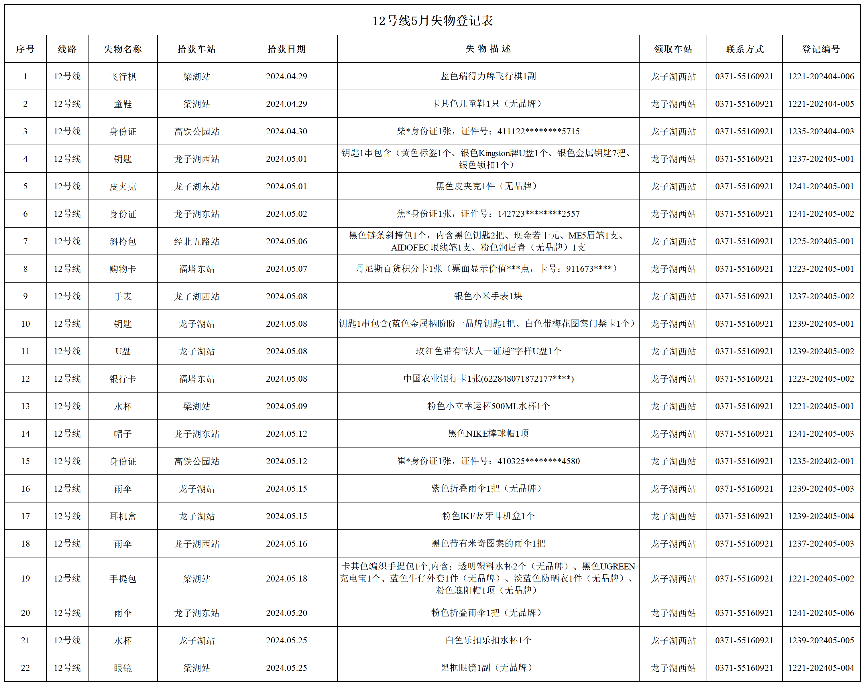 2024年4月28日—2024年5月28日車站無人認(rèn)領(lǐng)失物情況