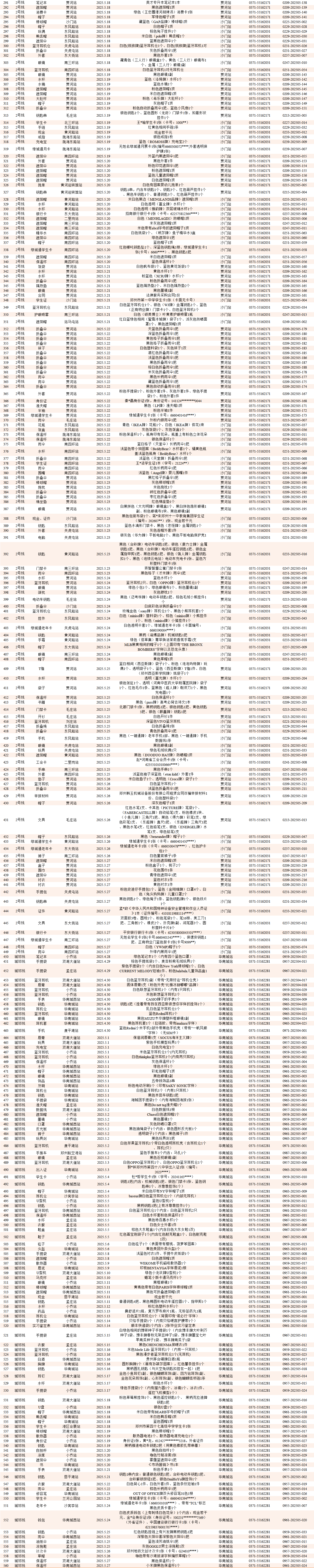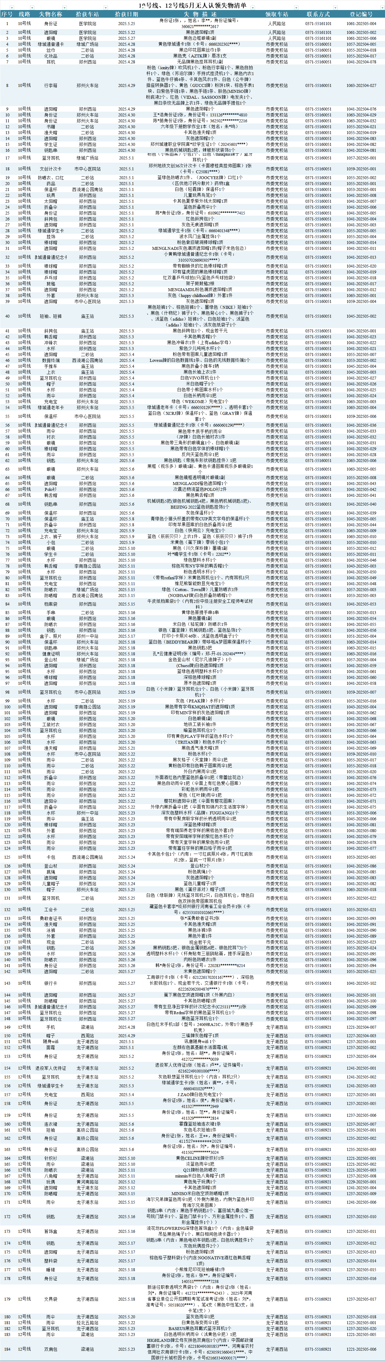 2025年4月28日—2025年5月28日車站無人認領(lǐng)失物情況